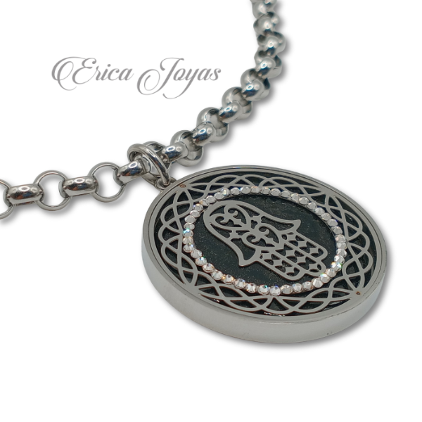 Conjunto con dije color negro, cúbics y Mano de Fátima tallada