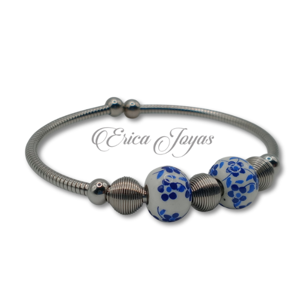Pulsera esclava rizada extensible con Donas azul y dijes